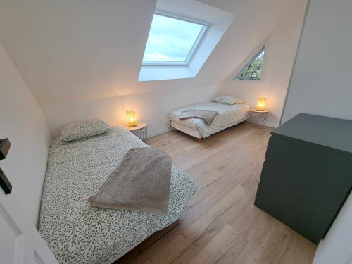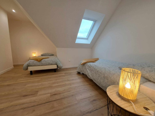 - 3 chambres (1 avec 1 lit double + TV, et 2 chambres avec 2 lits simples)
