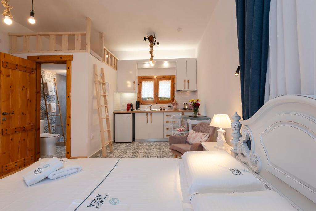 Featuring sea views, Ammou Area in Ammouliani features accommodation, a private beach area, water sports facilities, a garden and barbecue facilities. This beachfront property offers access to a balcony, free private parking and free WiFi. Boasting family rooms, this property also provides guests with a picnic area.