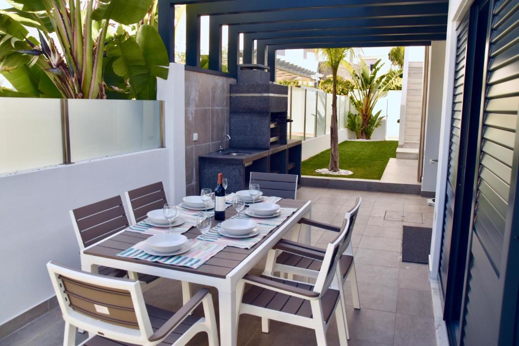 Cette villa avec climatisation se compose de 3 chambres, d'un salon, d'une cuisine entièrement équipée avec un réfrigérateur et une machine à café, ainsi que de 3 salles de bains avec un bidet et une douche. Des serviettes et du linge de lit sont à votre disposition.
