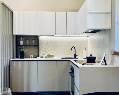 Vous trouverez une salle de bains privative avec un bidet et des articles de toilette gratuits dans chaque logement, tout comme un sèche-cheveux.