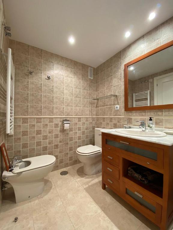 The spacious apartment with a terrace and sea views has 2 bedrooms, a living room, a flat-screen TV, an equipped kitchen with a dishwasher and an oven, and 2 bathrooms with a bidet. Towels and bed linen are offered in the apartment. The property has an outdoor dining area.