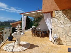 The apartment is equipped with 1 bedroom, 1 bathroom, bed linen, towels, a flat-screen TV, a dining area, a fully equipped kitchen, and a terrace with mountain views. Guests can enjoy a meal on an outdoor dining area while overlooking the quiet street views. For added privacy, the accommodation has a private entrance and is protected by full-day security.