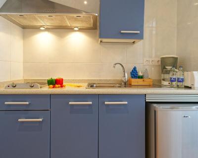 This studio features modern décor and parquet floors. It comes with a sofa bed, an LCD TV and a private terrace without direct views to the beach. The kitchenette includes a ceramic hob, toaster and microwave.