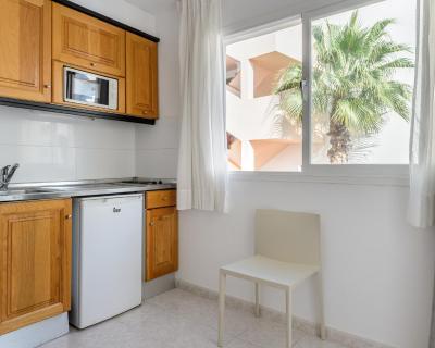 Cet appartement moderne et climatisé dispose d'une terrasse offrant une vue sur la piscine. Le salon comprend une télévision par satellite avec des chaînes musicales et un téléphone. La kitchenette est équipée d'un mini-réfrigérateur et d'un micro-ondes. La salle de bains privative est pourvue d'un sèche-cheveux. Une connexion Wi-Fi et un coffre-fort sont disponibles gratuitement.
