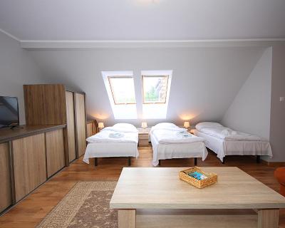 The triple room offers a private entrance, a tea and coffee maker, as well as a private bathroom boasting a shower and a hairdryer. The well-equipped kitchen has a stovetop, a refrigerator, kitchenware and a microwave. The triple room features a flat-screen TV, a dining area, a wardrobe, heating as well as a quiet street view. The unit has 2 beds.