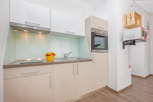 The apartment provides guests with a terrace, sea views, a seating area, satellite flat-screen TV, a fully equipped kitchen with a dishwasher and an oven, and a private bathroom with walk-in shower and slippers. A toaster, a fridge and kitchenware are also featured, as well as a coffee machine and a kettle. At the apartment complex, the units come with bed linen and towels.