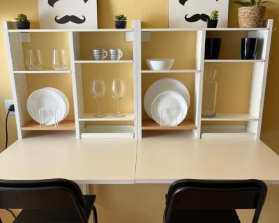 Kindly add that in the structure there is a common space used as a laundry room where there is a washing machine / dryer / clothes horse / ironing board and iron.