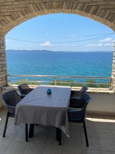 Die Unterkunft Apartments by the sea Kozino, Zadar - 5803 bietet ihren Gästen eine Terrasse, Meerblick, einen Sitzbereich, einen Satelliten TV, eine voll ausgestattete Küche mit einem Kühlschrank und einer Herdplatte sowie ein eigenes Badezimmer mit einer Dusche.