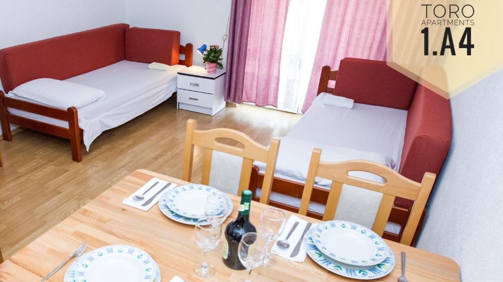 Set in the town of Pag, Apartments TORO Pag features a furnished balcony and an equipped kitchenette. The centre is 550 metres away. The nearest pebbly beach can be reached within 600 metres. Free on-site parking is available.