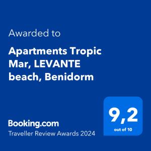Popular points of interest near Apartments Tropic Mar, LEVANTE beach, Benidorm include Casino Mediterraneo Benidorm, Benidorm Palace and Ti Ximo Inlet. Alicante–Elche Miguel Hernández Airport is 62 km away, and the property offers a paid airport shuttle service.