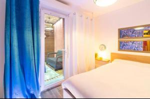 Cet appartement compte 1 chambre, une cuisine avec un réfrigérateur et un four, une télévision à écran plat, un coin salon, ainsi que 1 salle de bains possédant une douche.