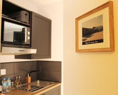 Les logements comprennent un coin salon avec télévision à écran plat, un coin repas, une salle de bains privative et une cuisine avec un micro-ondes, un réfrigérateur, un four, une bouilloire et une machine à café.