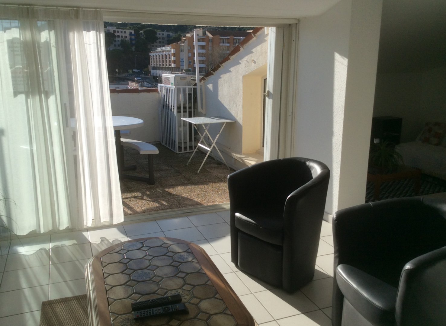 Situé au bord de la mer en centre ville, dans un immeuble exposé sud-est situé sur le port de plaisance, au 5 rampe Torcatis.
