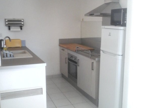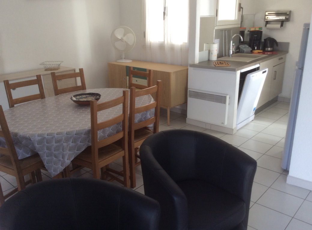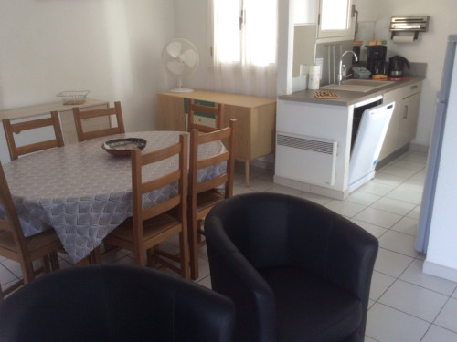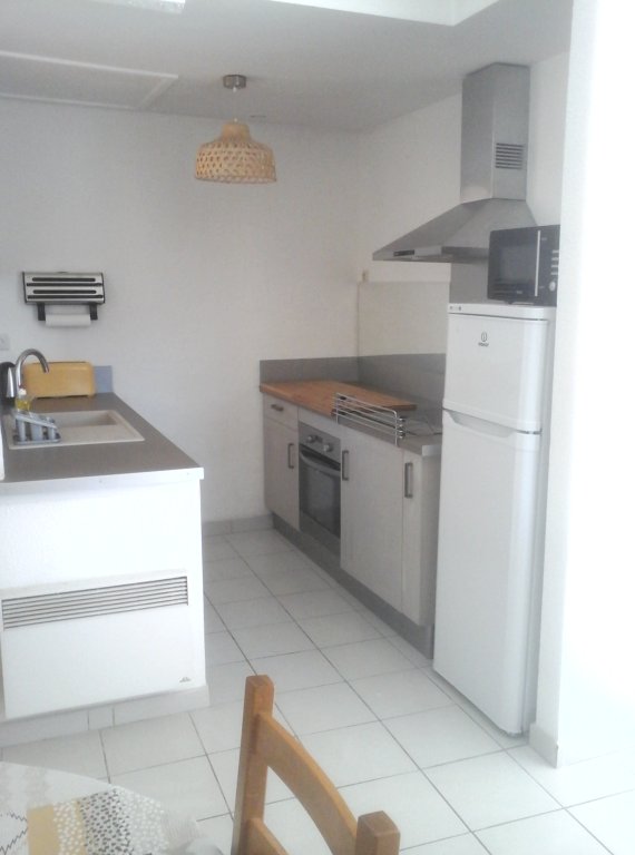 1 pièce à vivre à l'étage (salon/salle à manger/ petit salon télé). Cuisine ouverte avec lave vaisselle, four, frigo/congélateur, micro-ondes.