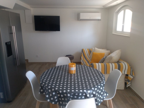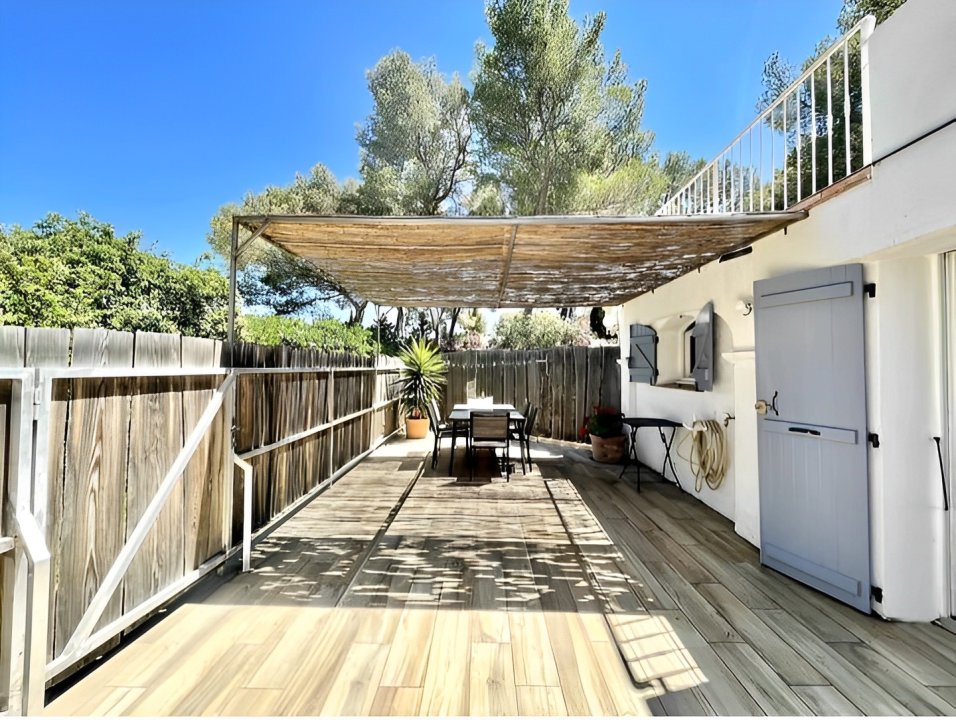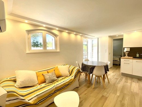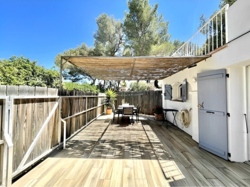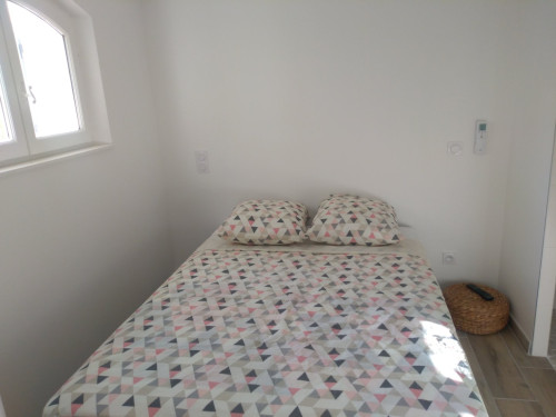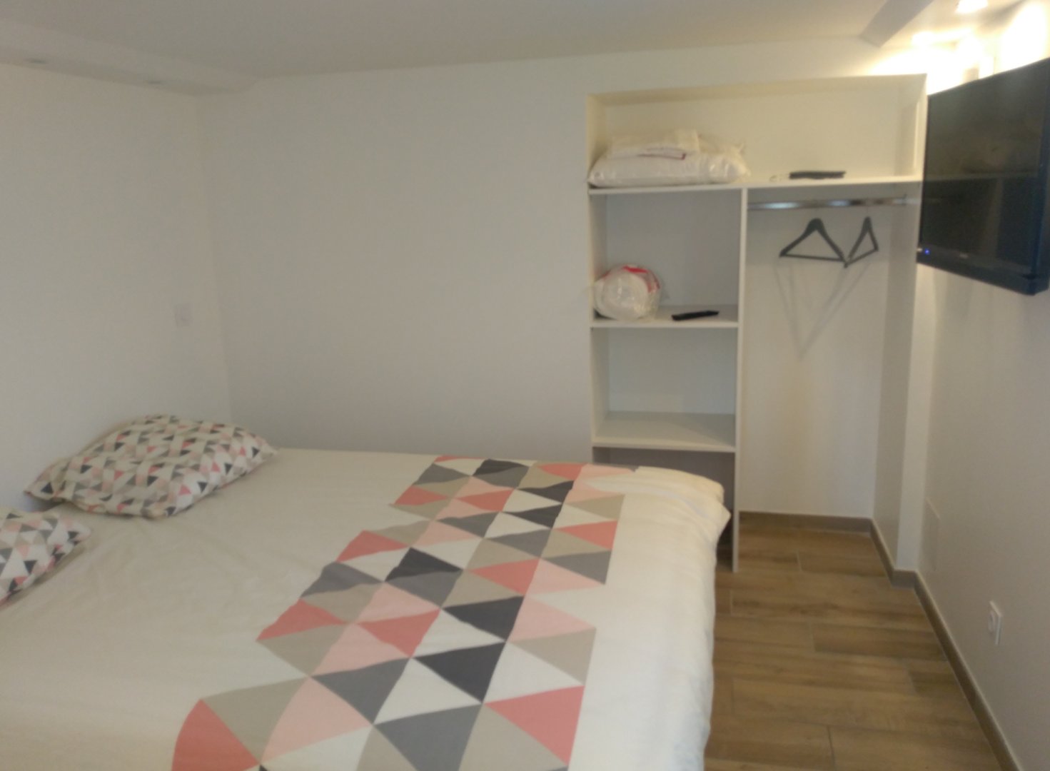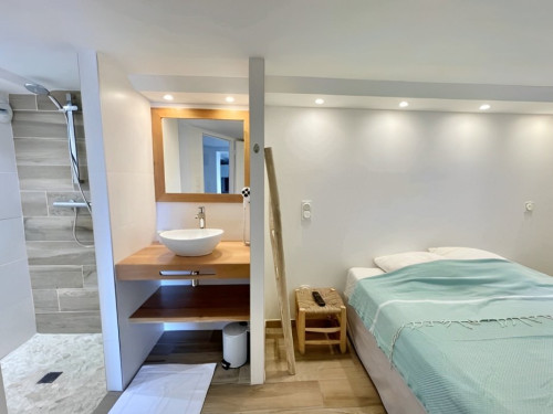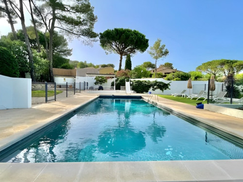 Appartement T3 rez de jardin climatisé en totalité , d'une cuisine équipée, plaque induction, frigo-américain, four/micro-ondes, est composé de 2 chambres lit 160/14 avec salle de bains privative, wc suspendu indépendant, canapé dans séjour donnant sur la terrasse de 60 m² fermée par un portillon vue sur la piscine, salon de jardin et bains de soleil, avec piscine 14 X 5 fermée par un portillon et clôturée.