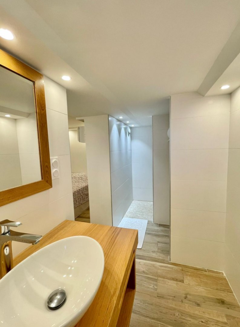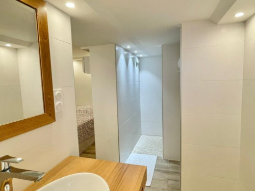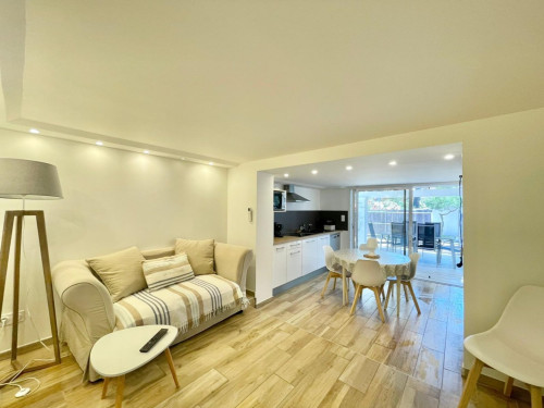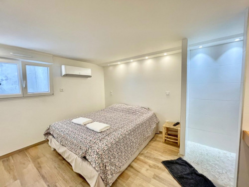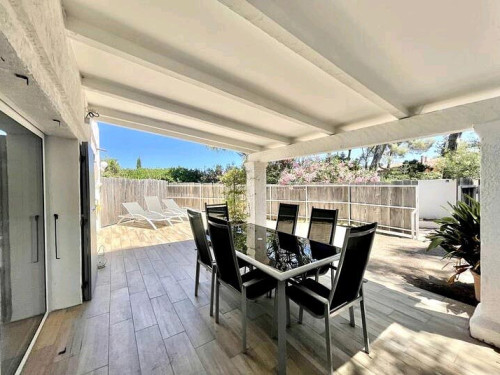 Appartement rez de jardin climatisé en totalité , cuisine équipée, plaque induction, frigo-américain, four/micro-ondes, est composé de 3 chambres lit 160 avec salle de bains privative, séjour/cuisine ouvrant par une baie donnant sur la terrasse de 60 m² fermée par un portillon vue sur le parc, salon de jardin et bains de soleil, avec piscine 14 X 5 fermée par un portillon et clôturée