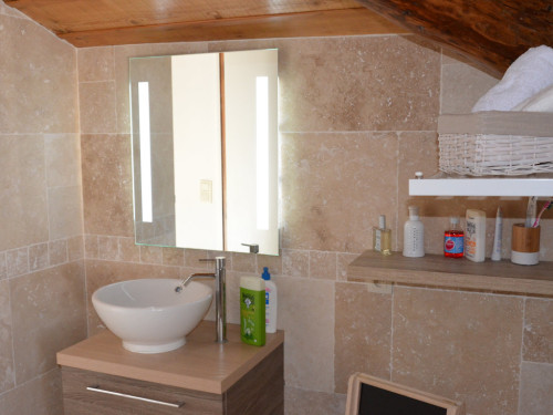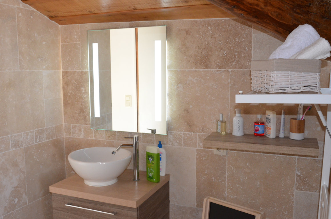 Le Sommet est un appartement 2 chambres capable d'accueillir 4, voire 5 vacanciers. Idéal pour une famille avec enfants. Deux belles salles de bains en pierre sont à votre disposition. Une chambre très spacieuse pour les parents puis une mezzanine avec deux lits 2 personnes. Dans le living un canapé lit une personne. Vue vers le jardin et la piscine.