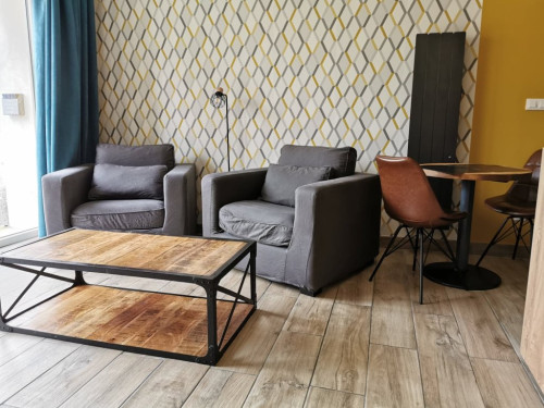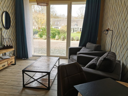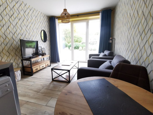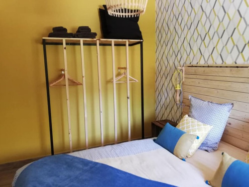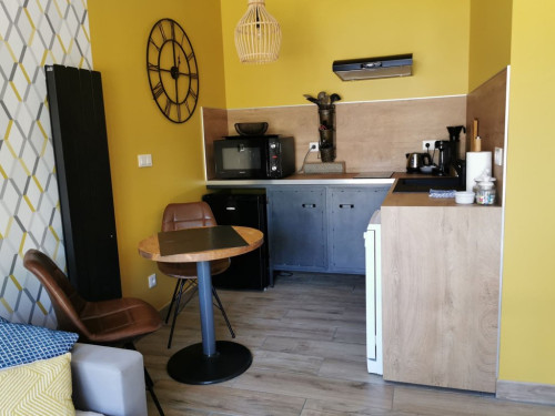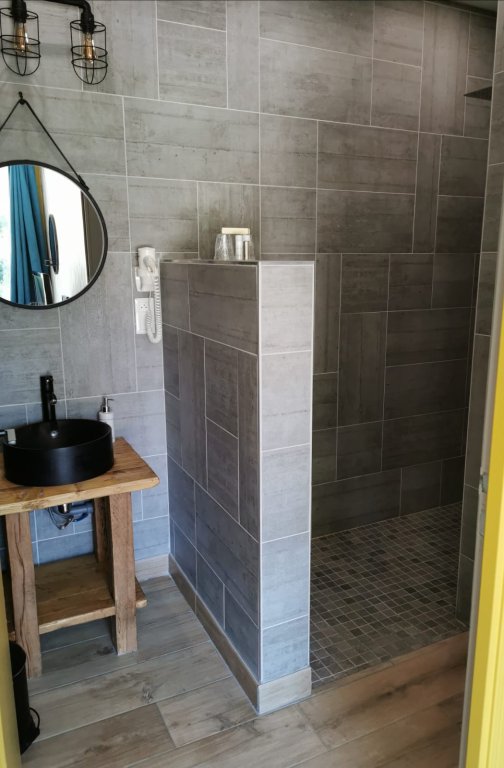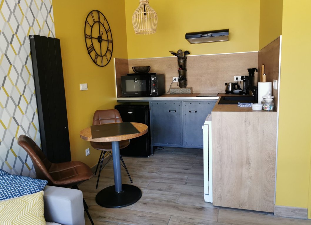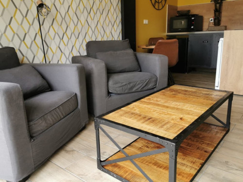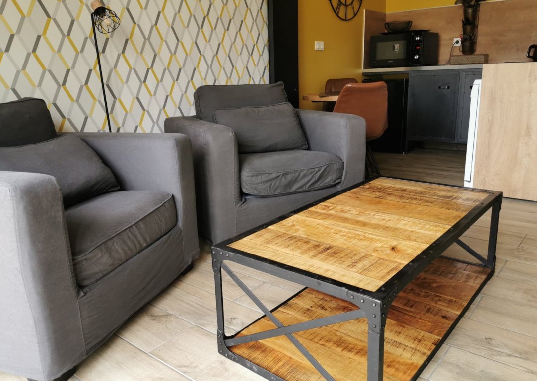 L'appartement "Justin et Robin", de 31 m², dispose d'un salon, d'un kitchenette, d'une chambre séparée avec literie 160x200 à mémoire de forme, d'une salle d'eau avec une grande douche à l'italienne et d'une terrasse. Grâce à sa baie vitrée, elle offre une vue imprenable sur le parc, duquel vous pouvez profiter avec nos autres hôtes.