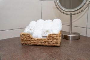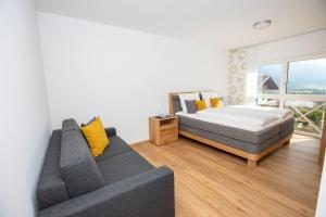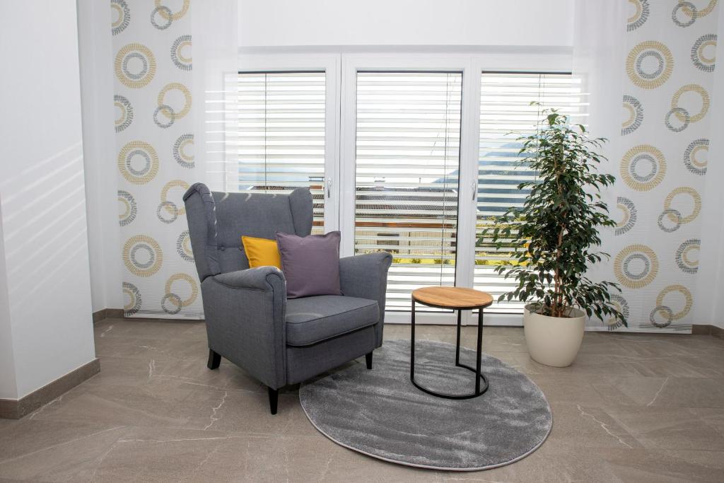 The apartment provides guests with a terrace, mountain views, a seating area, cable flat-screen TV, a fully equipped kitchen with a dishwasher and an oven, and a private bathroom with walk-in shower and a hair dryer. A toaster, a fridge and stovetop are also available, as well as a coffee machine and a kettle. At the apartment complex, every unit is fitted with bed linen and towels.