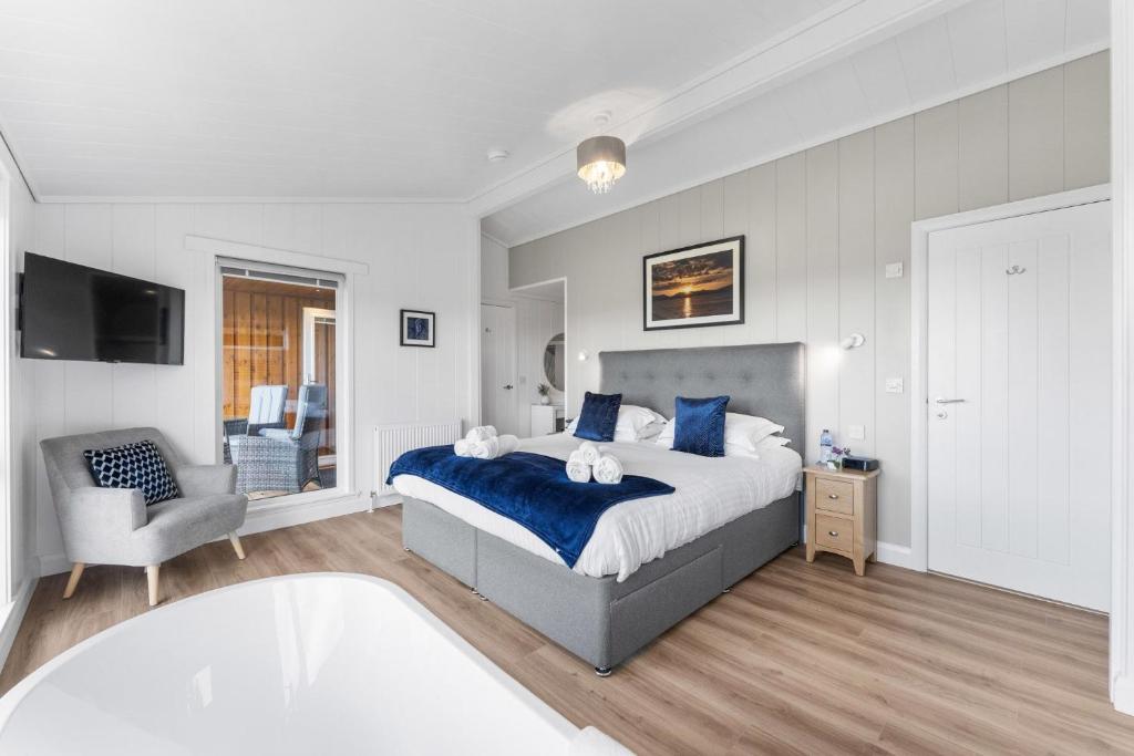 This holiday home features a patio, a living room and a flat-screen TV. The kitchen is equipped with a dishwasher, an oven and a microwave and there is a private bathroom with bathrobes and slippers. The accommodation offers a fireplace.