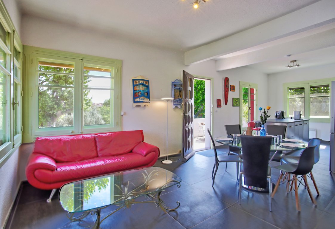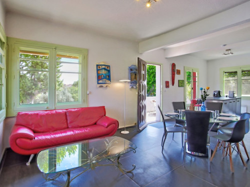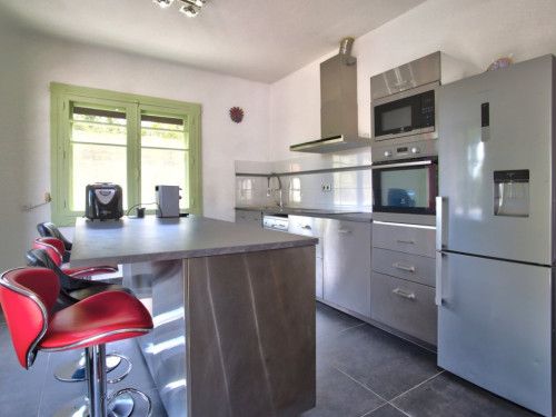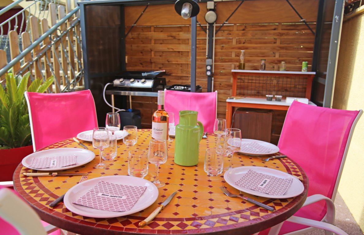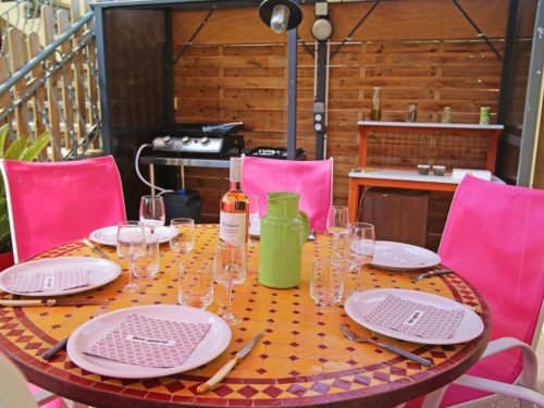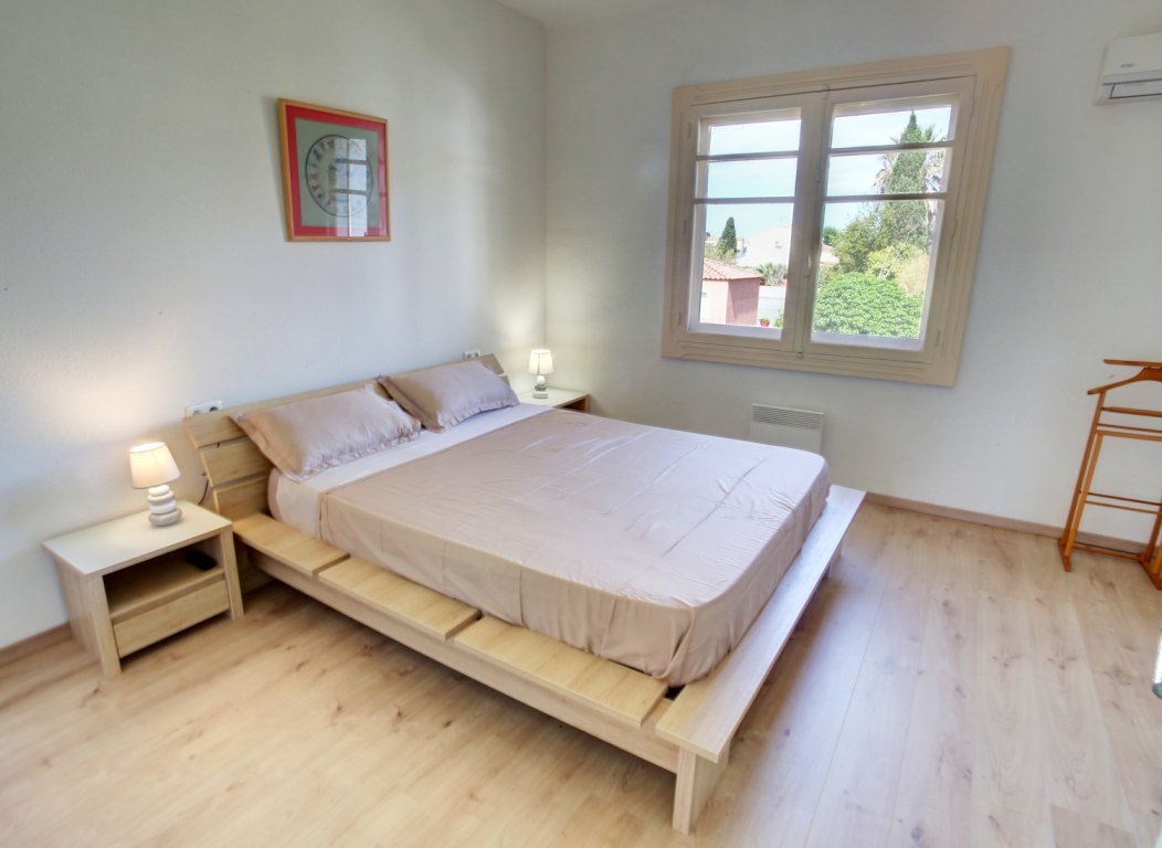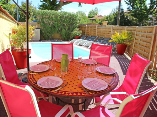 Cette maison de 110 m², entièrement climatisée, avec piscine privée chauffée à 28 °C du 28 mars au 11 novembre, offre un cadre idéal à Marseillan, à seulement 6,5 km de la plage et à 2 min à pied du centre-ville et du port. La cuisine américaine ouverte mène à une terrasse aménagée, parfaite pour savourer des moments en extérieur. À l’extérieur, une cuisine d'été avec plancha à gaz et réfrigérateur complète le coin repas, situé juste en face de la piscine (6 x 3 m), entourée d’une clôture sécurisée pour votre tranquillité. Un parking pour deux véhicules est accessible via un portail électrique, et une table de ping-pong est disponible pour agrémenter vos loisirs.