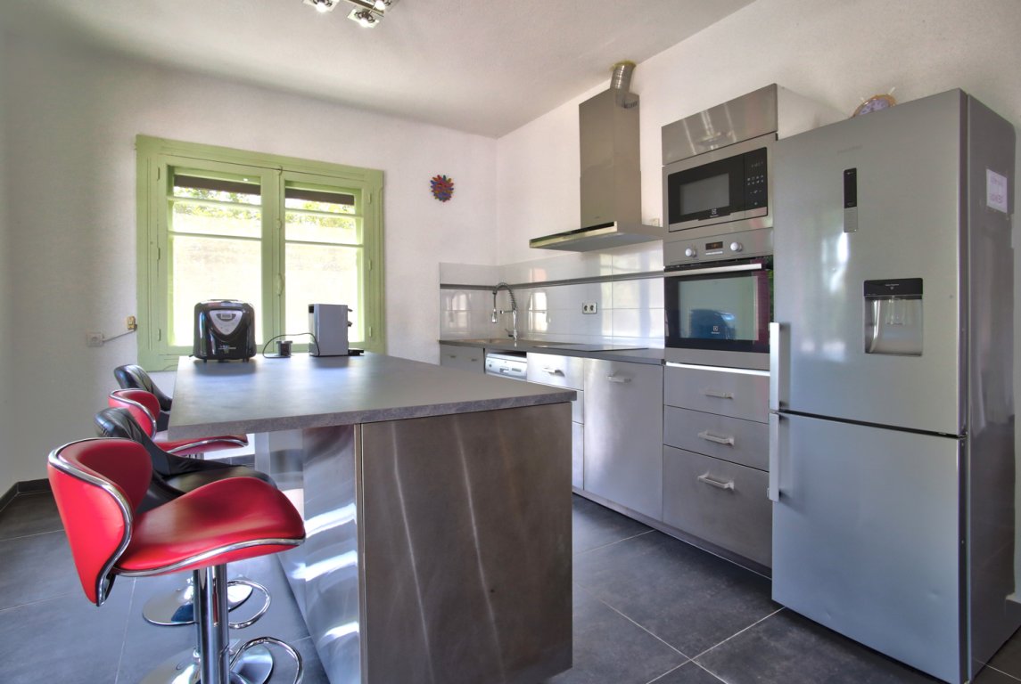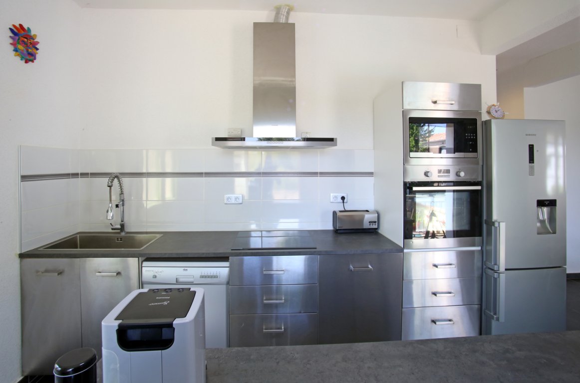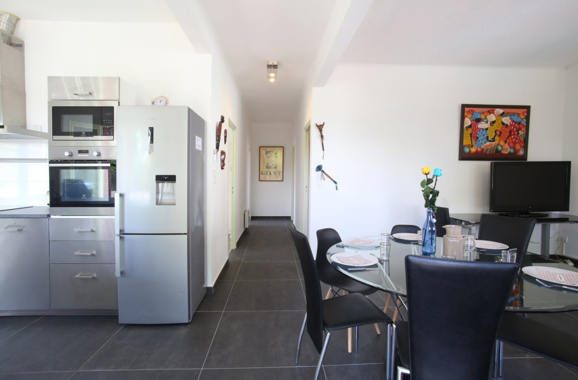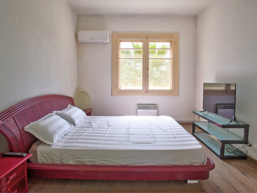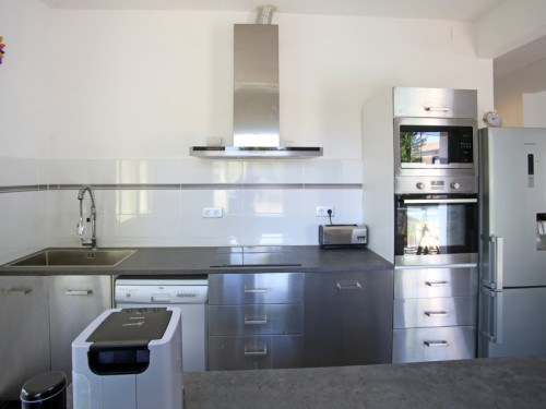 Cette maison de 110 m², entièrement climatisée, avec piscine privée chauffée à 28 °C du 28 mars au 11 novembre, offre un cadre idéal à Marseillan, à seulement 6,5 km de la plage et à 2 min à pied du centre-ville et du port. La cuisine américaine ouverte mène à une terrasse aménagée, parfaite pour savourer des moments en extérieur. À l’extérieur, une cuisine d'été avec plancha à gaz et réfrigérateur complète le coin repas, situé juste en face de la piscine (6 x 3 m), entourée d’une clôture sécurisée pour votre tranquillité. Un parking pour deux véhicules est accessible via un portail électrique, et une table de ping-pong est disponible pour agrémenter vos loisirs.