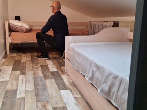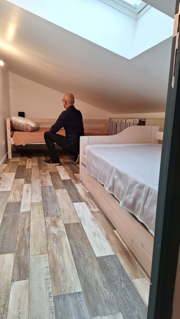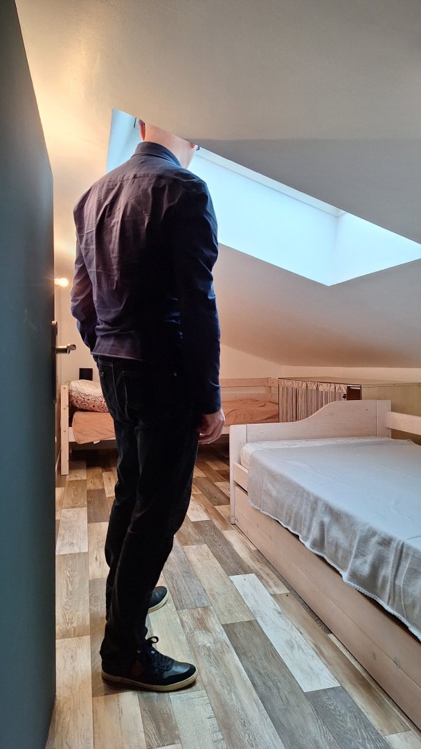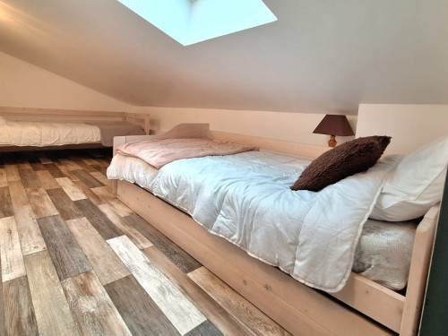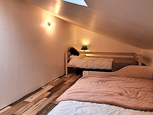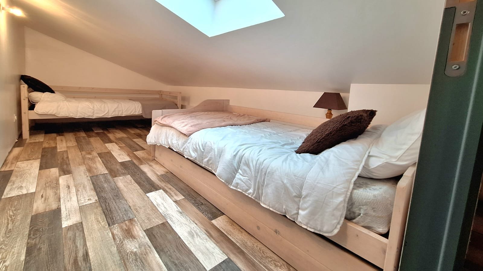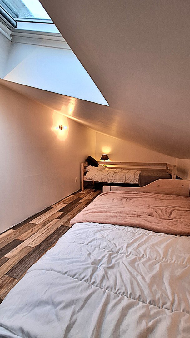 - une seconde petite chambre mansardée (hauteur maxi 1.60 m au plus haut) avec 2 lits en 90