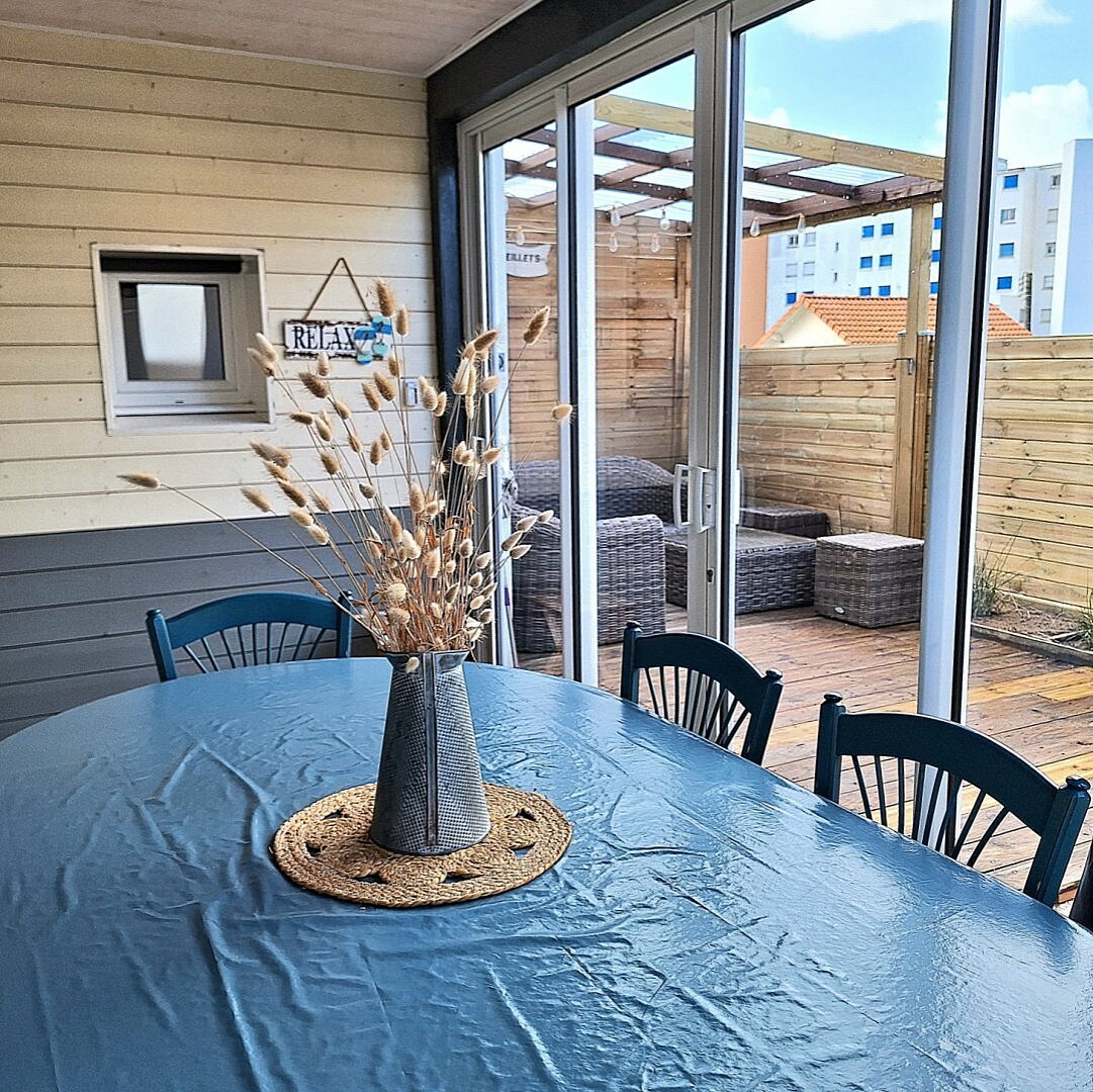 À seulement 200 mètres de la plage et des commerces, notre gîte de 90 m² peut accueillir confortablement 4 adultes et 2 jeunes enfants. Idéalement situé, à proximité immédiate de la plage, des animations de la rue piétonne, vous profiterez du calme de ce cadre.