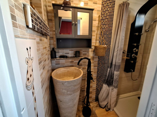 - une grande suite parentale équipée d’un lit en 140 et d’une salle d’eau privative