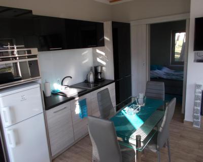 The holiday home provides guests with a terrace, garden views, a seating area, satellite flat-screen TV, a fully equipped kitchen with a dishwasher and a microwave, and a private bathroom with walk-in shower and a hair dryer. A toaster, a fridge and stovetop are also provided, as well as a coffee machine and a kettle. At the holiday home, each unit is equipped with bed linen and towels.