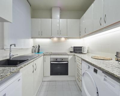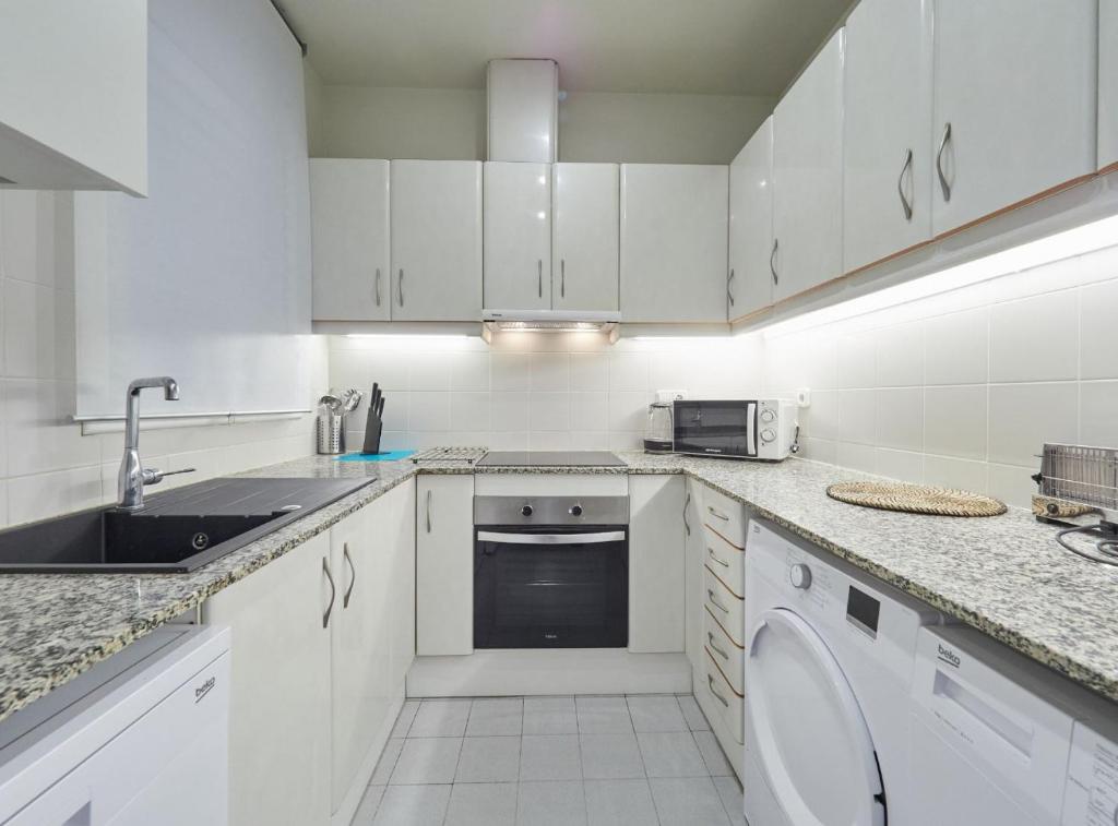 The living room is spacious and includes a flat-screen TV, sofa bed and iPod dock. Complete with a dishwasher, the kitchen comes with an oven and a coffee machine.