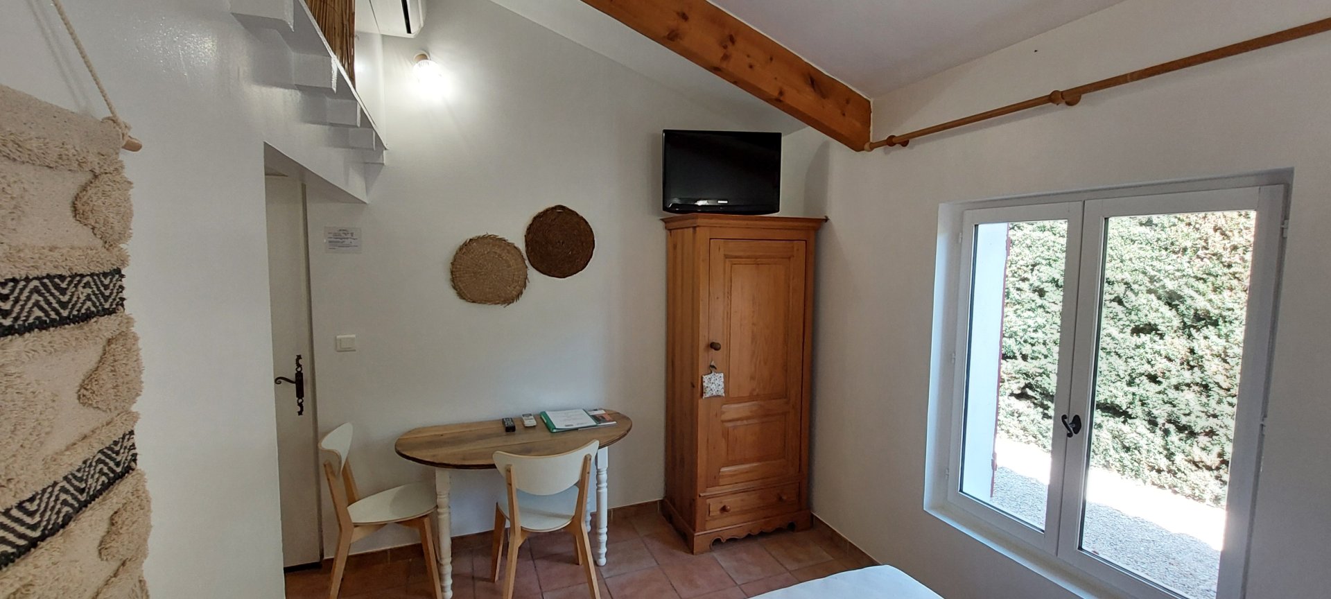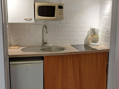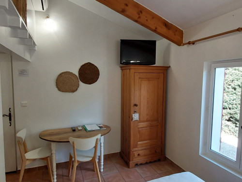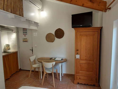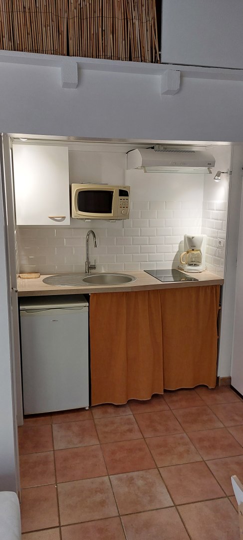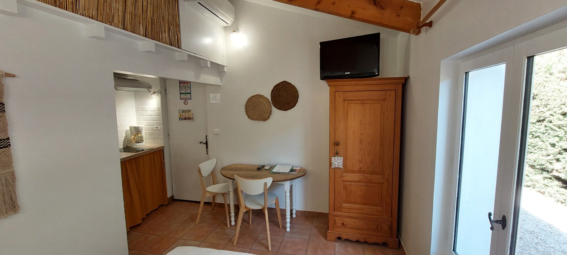 Gîte classé 1 étoile, d'une superficie de 13 m², fonctionnel, avec une kitchenette équipée, une salle d'eau et une petite terrasse.