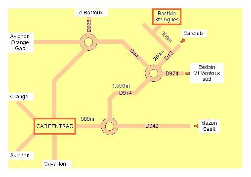 Lorsque vous êtes à Carpentras, prendre la direction du Mont-Ventoux Sud, Bédoin.