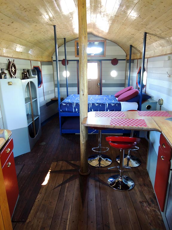L'électricité est fournie par 4 panneaux photovoltaïques de 250 watts, de quoi éclairer l'ensemble et recharger, en 220 volts, portables, lecteurs DVD et ordinateurs portables.