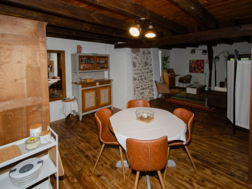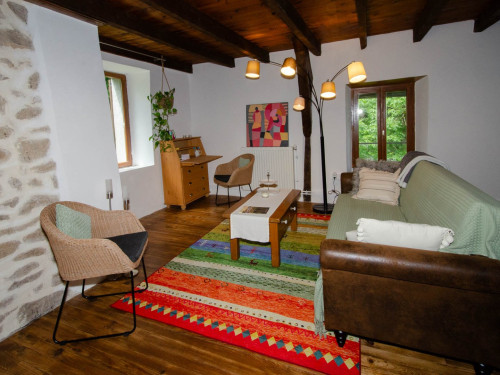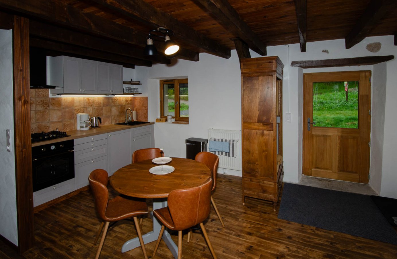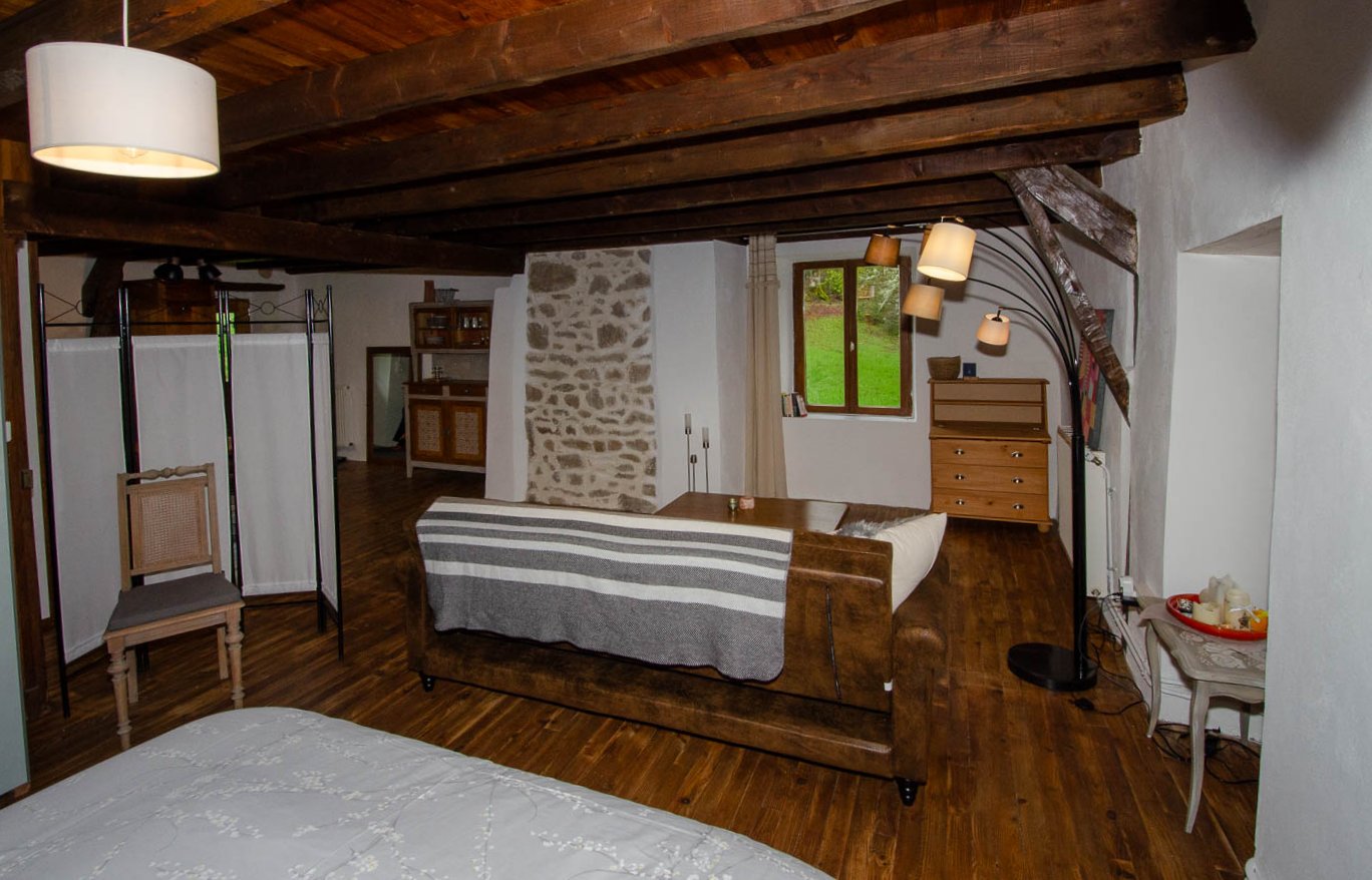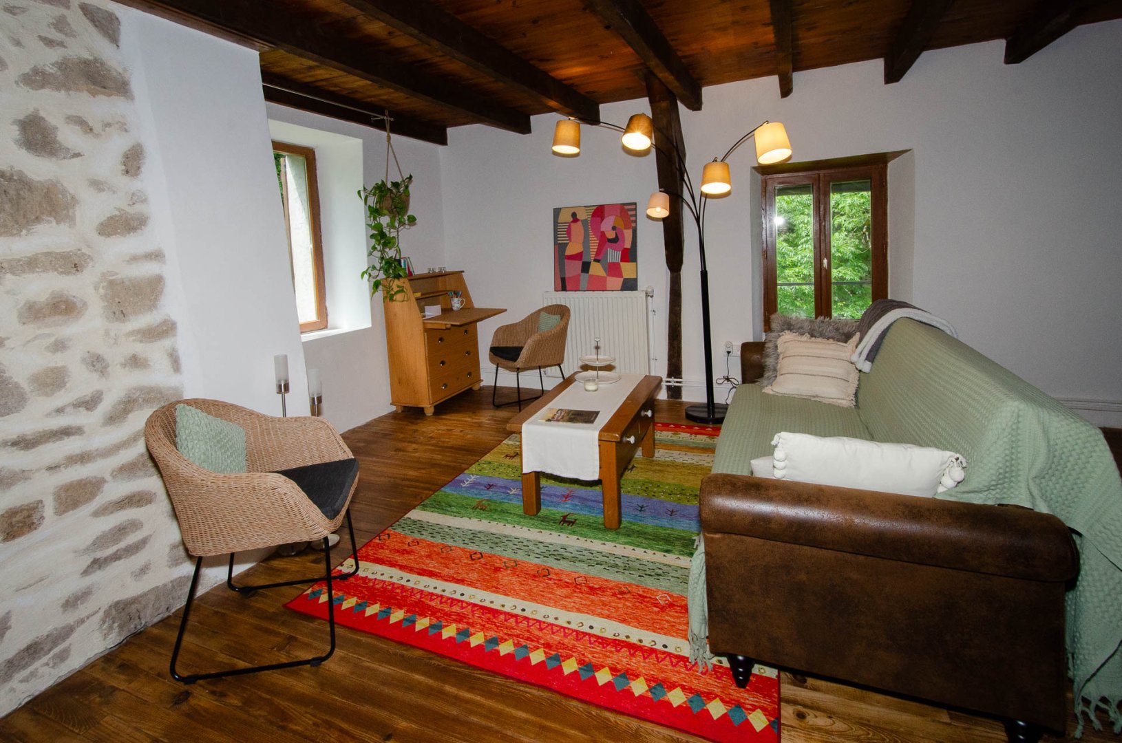 Nous avons aménagé le studio en 2024 dans la longère où nous vivons également. Il dispose d'un accès séparé et offre une surface ouverte d'environ 55 m² pour deux personnes.