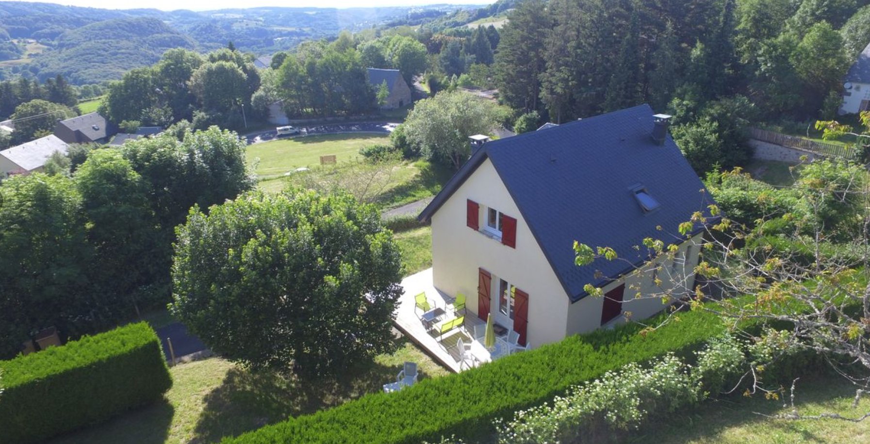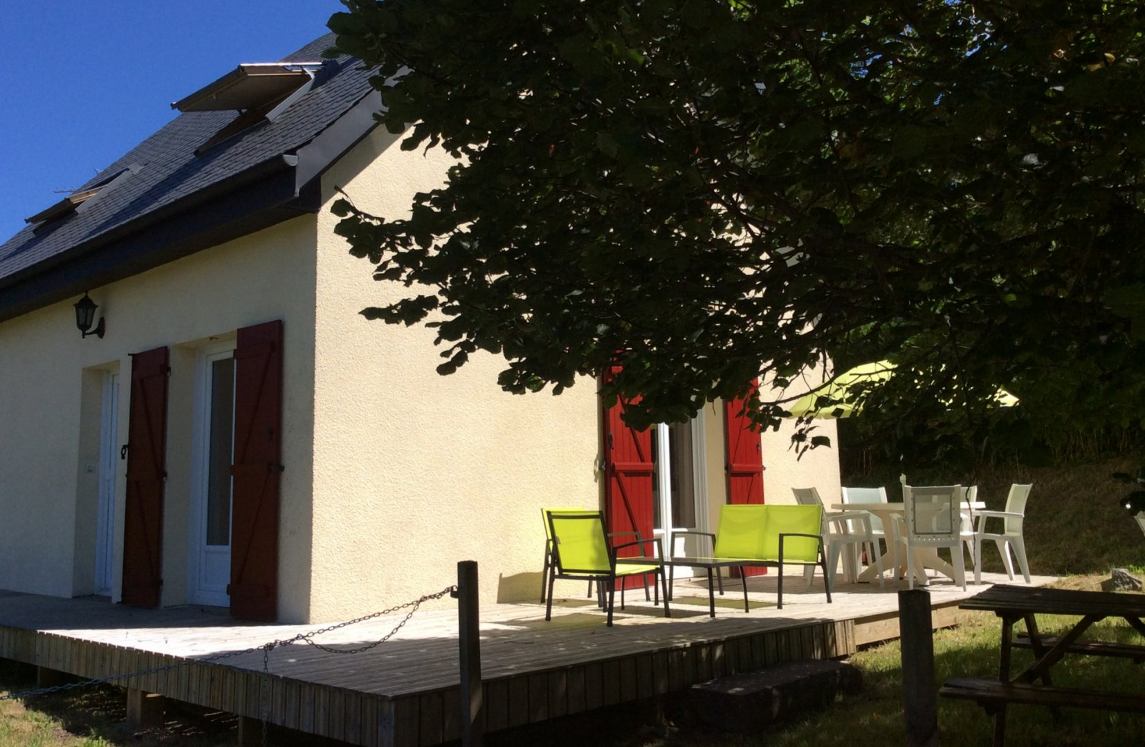 Villa individuelle, dans petit village Auvergnat : conçue pour accueillir une ou deux familles (de 2 à 9 personnes) dans un écrin de verdure à 1000 mètres d’altitude. À 3 mn de la BOURBOULE