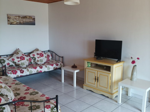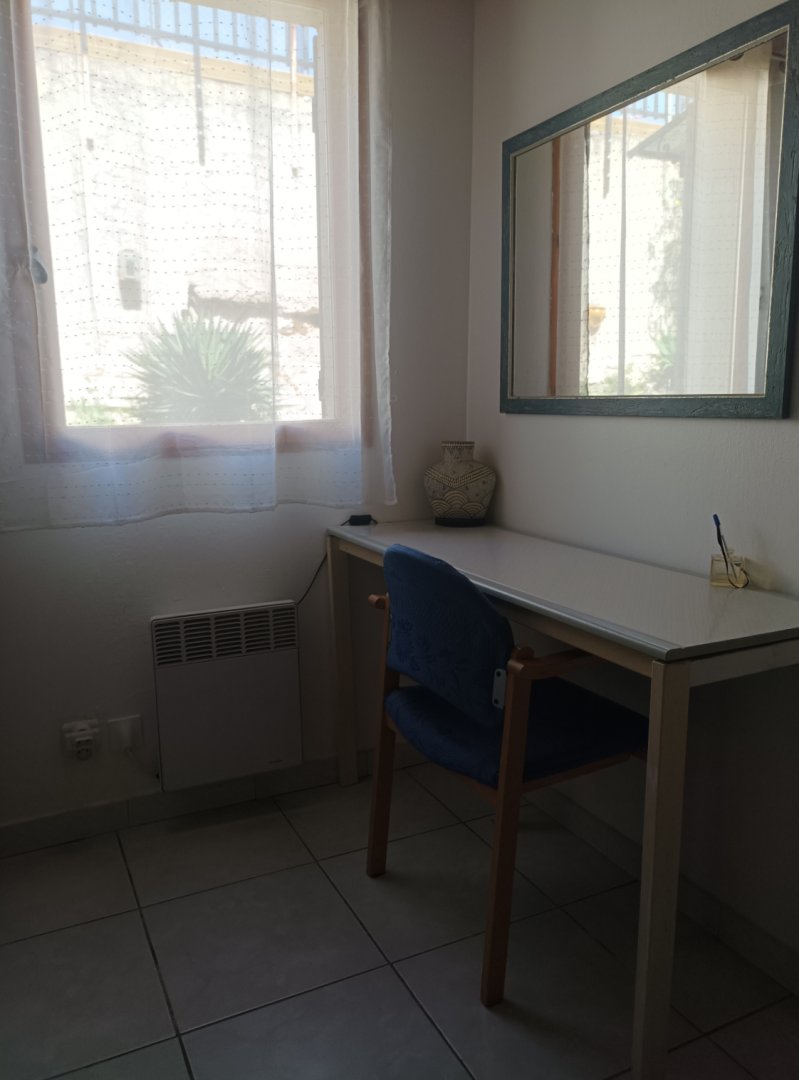 -Descriptif : Salon-Cuisine-Coin repas- 2 chambres-Salle d'eau-Terrasse-Jardin. Parking gratuit proche : dans une rue parallèle calme, dans le rond point.