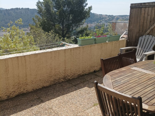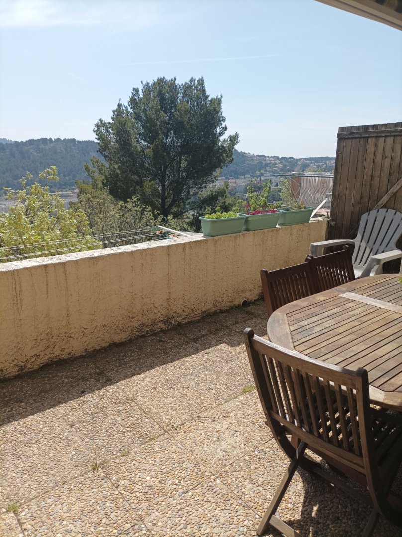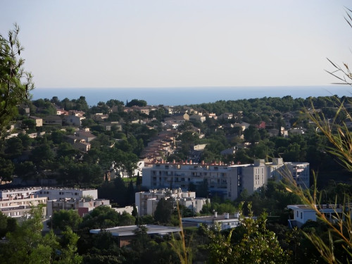 CARNOUX en PROVENCE : "Belle vue". Entre mer et collines, appartement indépendant en rez-de-jardin de villa avec terrasse ensoleillée avec vue sur les collines, le village, et la mer au loin. Quartier résidentiel sous vidéo protection. Climat agréable toute l'année. Mer et plages à 6km, balades en colline sur place avec vues panoramiques, table d'orientation. Proche de tous lieux touristiques, culturels et sportifs avec entrée et sortie d'autoroute. Wifi gratuit.
