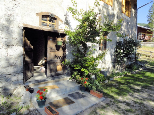 Extérieur : Jardin de 250 m2 exposé sud sud-ouest avec magnifique vue sur la vallée de Vars. Parking privé