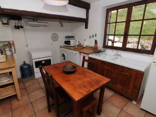 Composé d'un très beau séjour de 40 m² avec parquet ancien en mélèze et poêle à bois scandinave, et de 3 chambres agréables. La cuisine conserve un charme rustique avec un équipement complet et de qualité.