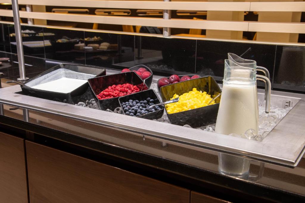 A selection of options including fruits, juice and cheese is served for the buffet breakfast. At the aparthotel, the family-friendly restaurant is open for dinner and serves Italian cuisine.