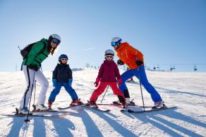 For guests with children, the farm stay features indoor and outdoor play areas. After a day of skiing, cycling or hiking, guests can relax in the garden or in the shared lounge area.
