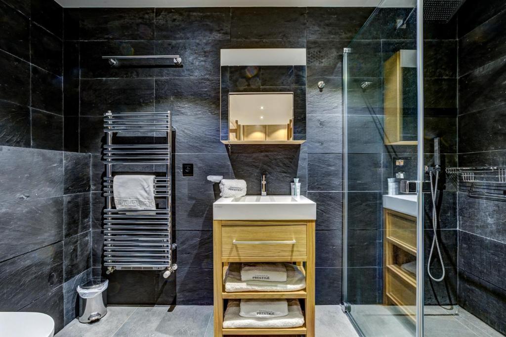 Ce chalet comporte 5 chambres, 7 salles de bains, du linge de lit, des serviettes, une télévision avec les chaînes du satellite, une cuisine entièrement équipée et une terrasse offrant une vue sur la montagne.