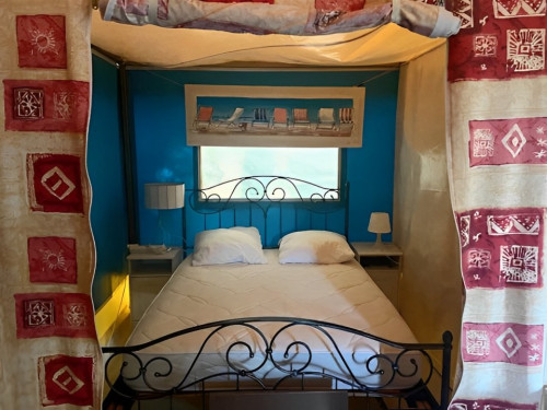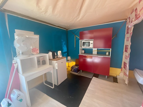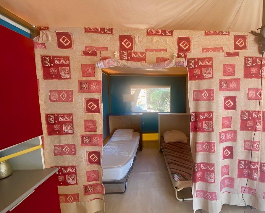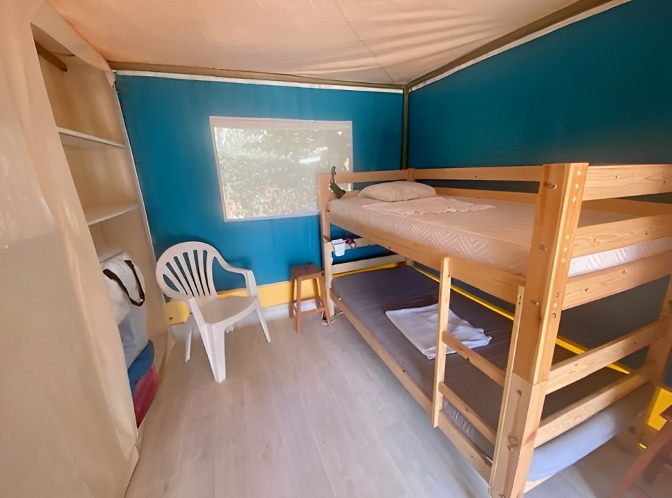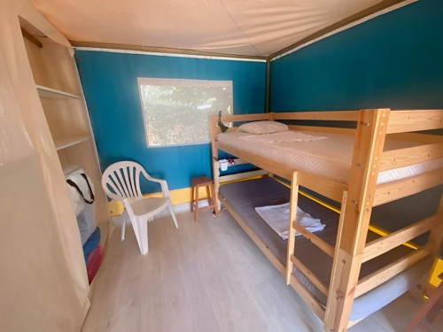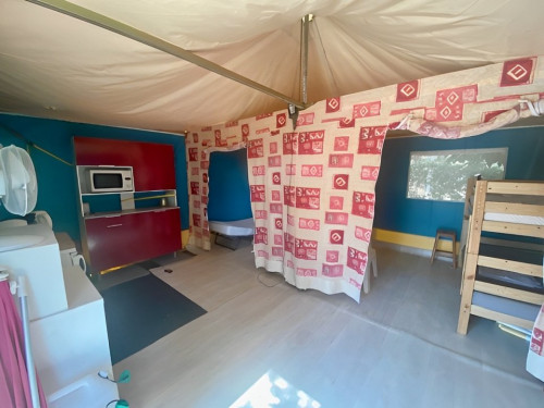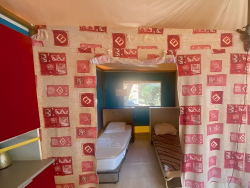- 2 chambres séparées par des parois en toile, penderies