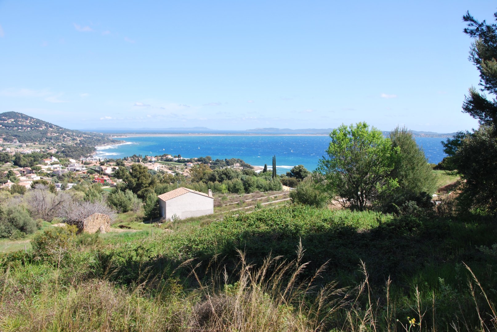 Dès votre arrivée, vous serez saisis par l'authenticité d'une nature préservée qui s'étend à flanc de colline sur des restanques s'ouvrant sur une vue spectaculaire à 180° sur la mer Méditerranée, le port de Carqueiranne, la presqu'île de Giens et les Îles d'Or avec Porquerolles au premier plan.