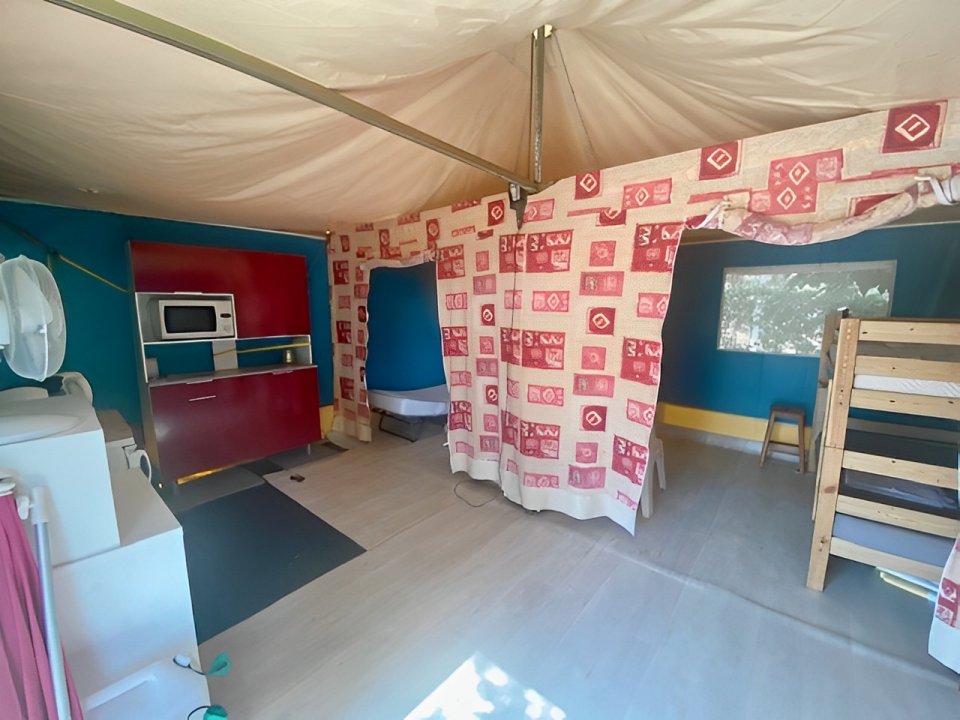 Situé dans une vaste pinède face à la mer, ce spacieux bungalow toilé (tente PAGAN Trigano) vous séduira par son confort et sa simplicité.