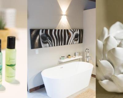 Toutes les chambres sont situées dans le grand jardin et disposent d'une terrasse privée offrant une vue sur le jardin et le lit de la rivière sec. Les chambres climatisées disposent d'un minibar, d'un coffre-fort et d'une machine à café Nespresso®. Un plateau/bouilloire, des peignoirs, des serviettes et des articles de toilette gratuits sont fournis. La salle de bains privative est pourvue d'une baignoire et d'une douche extérieure.