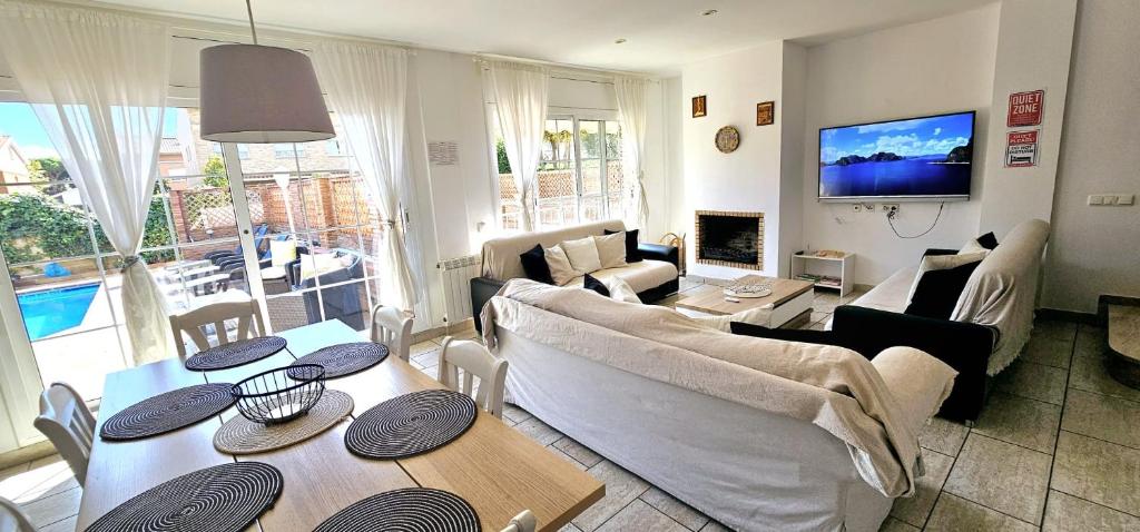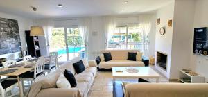 Boasting a balcony with sea views, a private beach area and pool with a view, Casa con piscina en costa Barcelona can be found in Sant Vicenç de Montalt, close to Platja del Balí and 38 km from Sagrada Familia. This beachfront property offers access to a terrace, free private parking and free WiFi. The property features a tour desk, a family-friendly restaurant with an outdoor dining area.