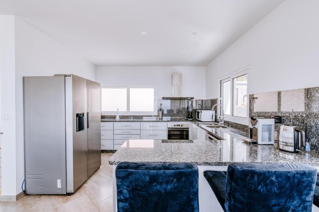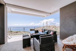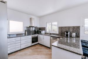The villa is equipped with 4 bedrooms, 2 bathrooms, bed linen, towels, a TV with satellite channels, a dining area, a fully equipped kitchen, and a terrace with sea views. Guests can enjoy a meal on an outdoor dining area while overlooking the garden views. For added privacy, the accommodation features a private entrance.