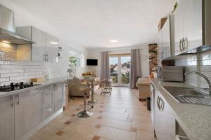 The apartment with a terrace and sea views has 2 bedrooms, a living room, a TV, an equipped kitchen with a dishwasher and an oven, and 2 bathrooms with a shower. Towels and bed linen are offered in the apartment. For added privacy, the accommodation features a private entrance.